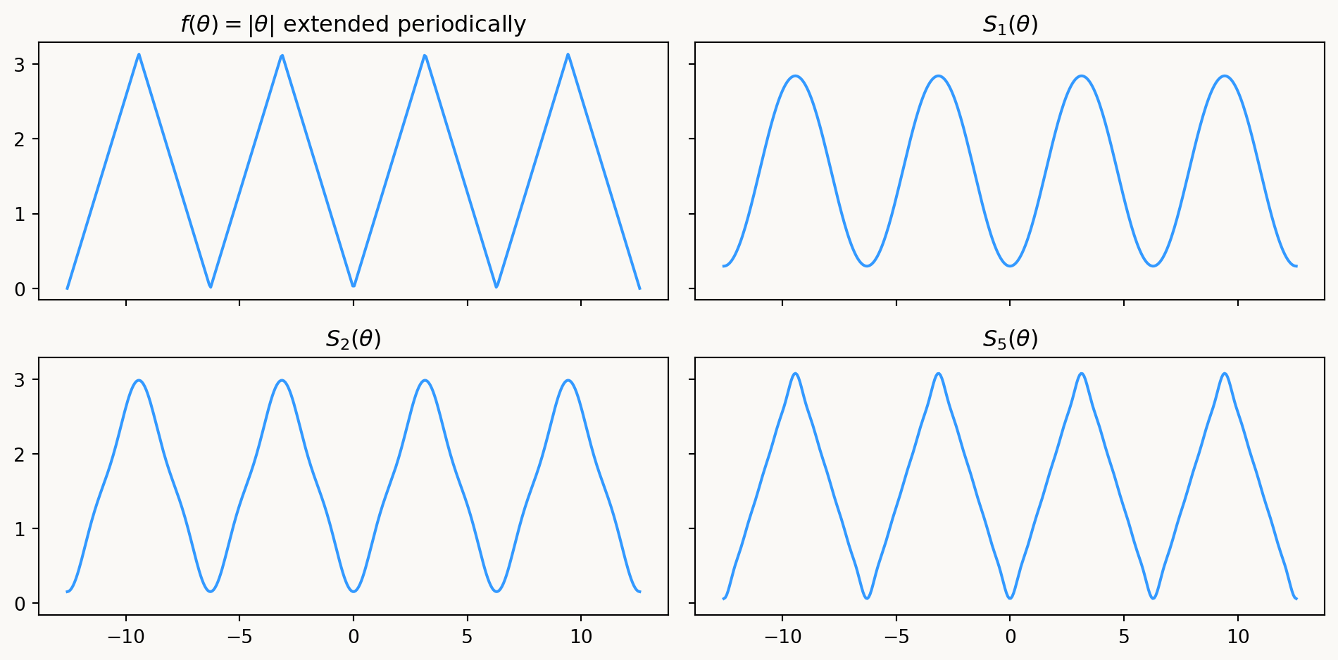 If the answer to (2) is always, then the function \(f\) had better be periodic with period \(2\pi\), so we will focus always on these types of functions.